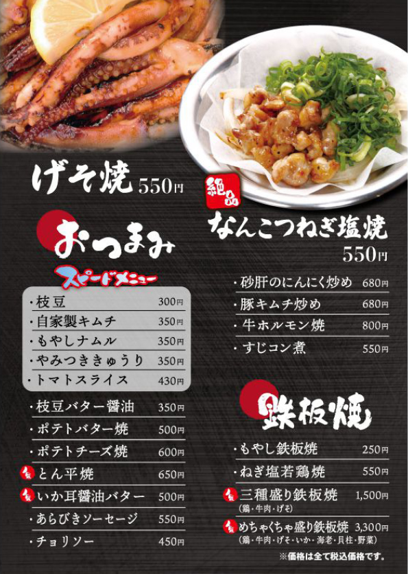 ■大阪府 「八戸ノ里店 メニュー」